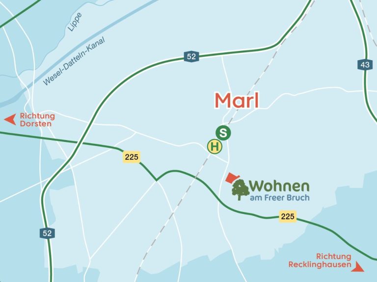 Das neu entstehende Quartier „Wohnen im Freer Bruch“ liegt im grünen Süden Marls, in den Stadtteilen Alt-Marl und Drewer-Süd.